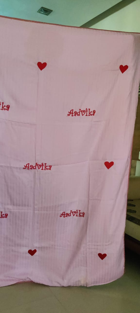 Personalized name stitching (example shown: Aadvika)